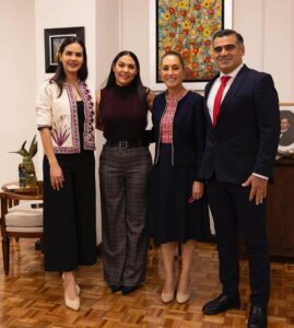 La gobernadora Indira Vizcaíno Silva, acompañada de la presidenta municipal de Manzanillo, Rosa María Bayardo Cabrera y el alcalde de Colima, Riult Rivera Gutiérrez, participó este viernes en la reunión diaria del Gabinete de Seguridad, que encabezó la presidenta de México, Claudia Sheinbaum Pardo.
