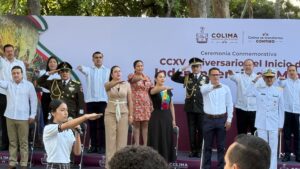 El evento celebrado en las inmediaciones del Parque Hidalgo, al sur de la ciudad de Colima, fue presidido por la gobernadora Indira Vizcaíno Silva, así como los titulares de los Poderes Legislativo y Judicial, el Secretario General de Gobierno, Eloy García Alcaraz, el Secretario de Educación y Cultura, Adolfo Núñez González, los dirigentes magisteriales de las Secciones 6 y 39 del SNTE y funcionarios de los tres niveles de gobierno y representantes de la XX Zona Militar, Marina, Guardia Nacional, entre otras corporaciones.