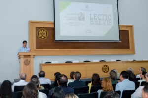 Al dar la bienvenida, Cristina Romero Michel, directora de la Facultad de Derecho, comentó que en esta ocasión la Lectio Brevis tenía un distintivo especial: “La disertación estará a cargo de un investigador que se destaca como referente a nivel internacional y gran promotor de la Filosofía, por ello estoy segura que la charla de hoy contribuirá a la generación del conocimiento e incidirá en el análisis de uno de los grandes problemas que actualmente nos aqueja”, enunció.