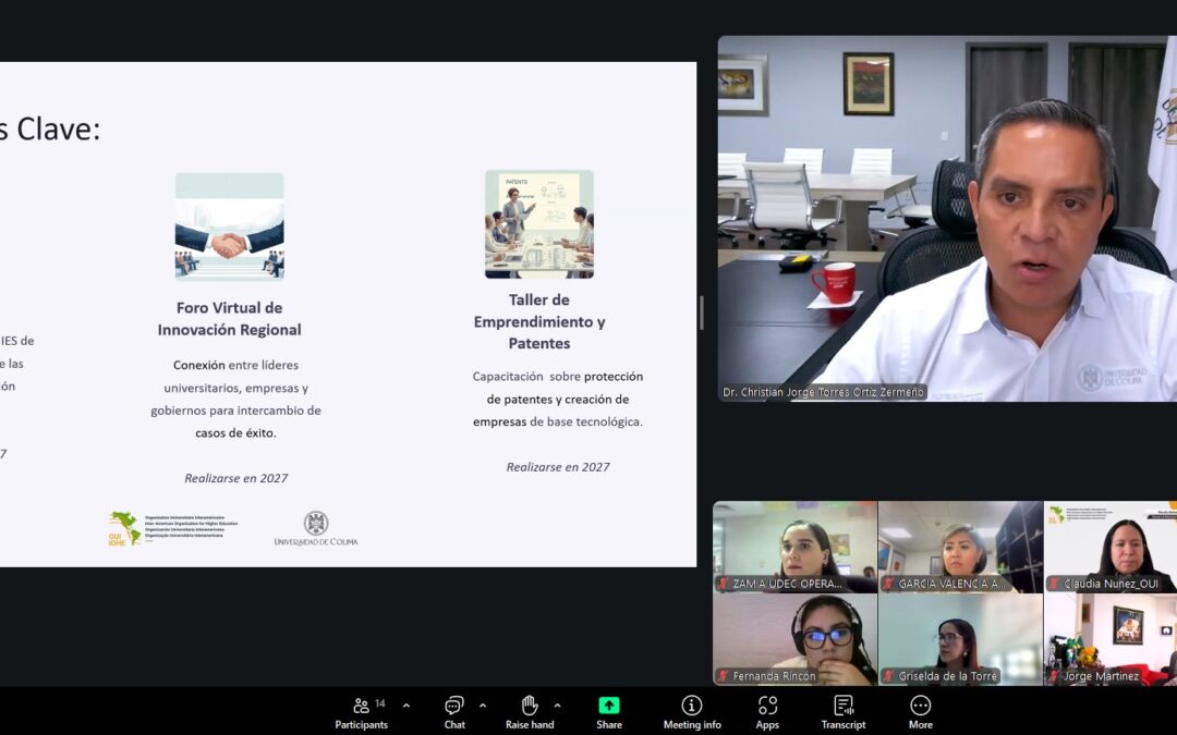 La paz, la salud mental y la ciencia aplicada a problemas urgentes de la sociedad son los ejes transversales del plan de trabajo 2025-2027 que propuso la mañana de este jueves, en reunión virtual, el rector de la Universidad de Colima, Christian Torres Ortiz Zermeño, en su carácter de vicepresidente regional de la Organización Universitaria Interamericana (OUI) para México, cargo para el que fue electo por segunda vez en la asamblea general de dicha organización realizada San José, Costa Rica, el pasado mes de octubre de 2025.