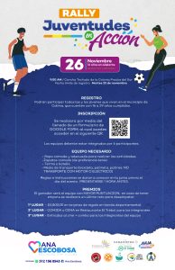 La Regidora del Ayuntamiento de Colima, Ana Escobosa, junto con representantes de asociaciones civiles, presentaron el «Rally Juventudes en Acción», mismo que se realizará el sábado 26 de noviembre, en colonias ubicadas al sur de la capital colimense.