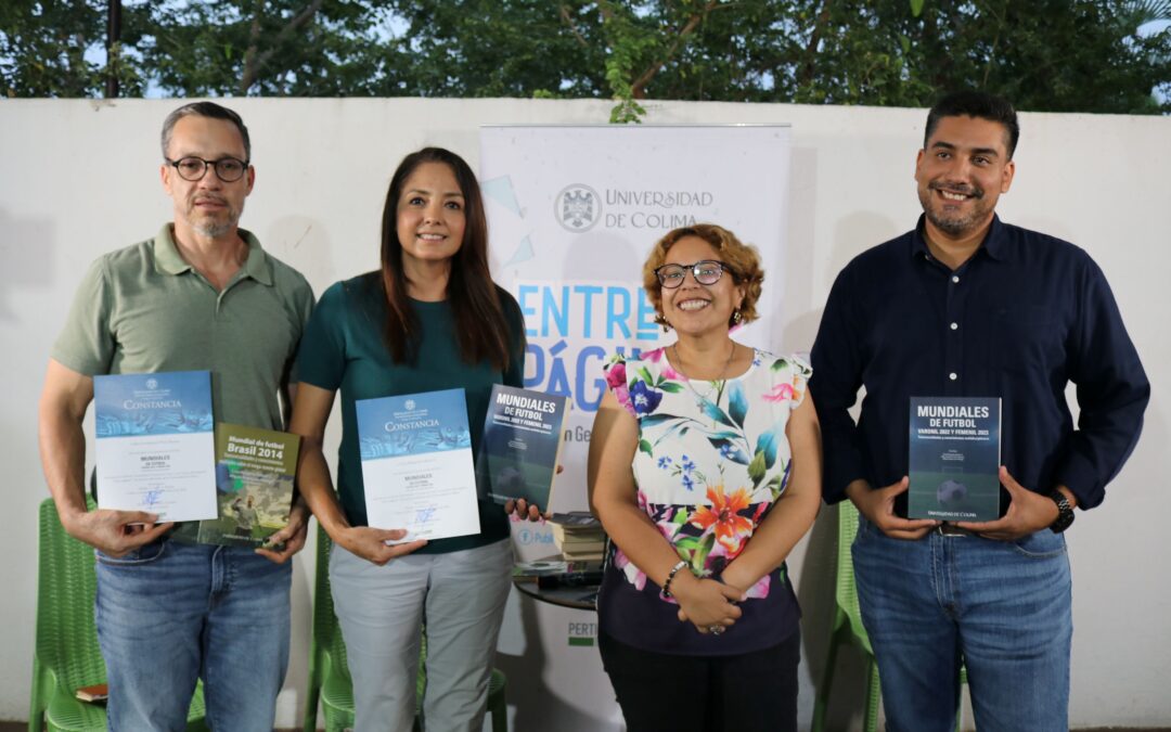 Los catedráticos e investigadores de la Universidad de Colima, Ciria Margarita Salazar y Alan Pérez Barajas, presentaron este jueves 26 de febrero por la tarde, en la librería universitaria Corazón en Casa, el libro “Mundiales de futbol varonil 2022 y Femenil 2023: transversalidades y conocimientos multidisciplinares”, obra que reúne 16 textos académicos que analizan estos mega eventos deportivos desde distintas disciplinas.