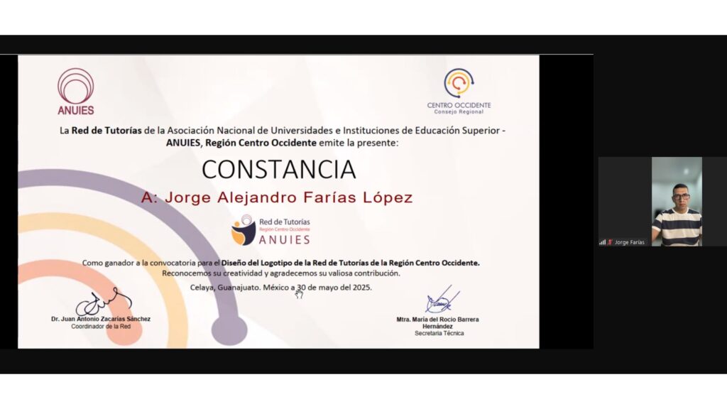 Jorge Alejandro Farías López, profesor de la Facultad de Letras y Comunicación de la Universidad de Colima, fue reconocido el pasado viernes 30 de mayo como ganador del concurso nacional para diseñar el logotipo oficial de la Red de Tutorías de la Región Centro-Occidente, convocado por la Asociación Nacional de Universidades e Instituciones de Educación Superior (ANUIES). Su propuesta fue seleccionada entre 30 diseños enviados por distintas universidades e instituciones de educación superior del país.