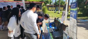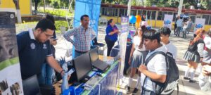 Estudiantes y docentes de la Ingeniería en Computación Inteligente que se imparte en la Facultad de Ingeniería Mecánica y Eléctrica (FIME) de la Universidad de Colima, campus Coquimatlán, promovieron su carrera durante la Feria Profesiográfica 2025 que realizó el Centro de Bachillerato Tecnológico e Industrial y de Servicios (CBTIS 19).