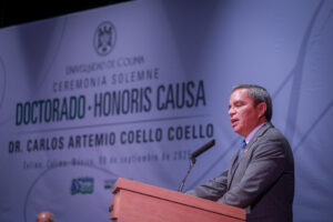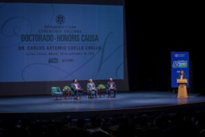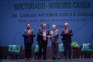 “Su trayectoria -destacó el rector Christian Torres Ortiz- es un ejemplo tangible de perseverancia y disciplina. En la UdeC, distinguimos al Doctor Coello porque compartimos su visión de que la educación de calidad y la inversión en ciencia y tecnología son las verdaderas llaves del progreso y el bienestar”.