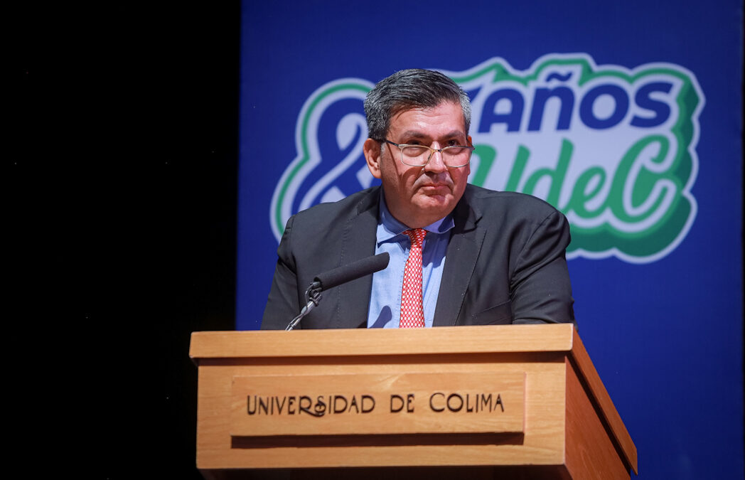 En su intervención, el rector señaló que, con este reconocimiento, la Universidad de Colima celebra las contribuciones del doctor Carlos Artemio, una figura sobresaliente en el campo de la computación evolutiva, reconocido como el científico más destacado en lenguaje computacional en México y uno de los 300 más importantes a nivel mundial.