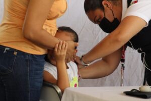 Al corte del 3 de diciembre se registra 106% de la meta en la aplicación de la vacuna SRP (contra sarampión, rubeola y parotiditis) a menores de seis años de edad, al aplicar 8 mil 754 de las 8 mil 260 dosis programadas, mientras que en menores de un año tienen un 91% con 7 mil 288 de las 8 mil 025 dosis que se tienen como meta.