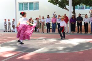 La ceremonia incluyó honores a la bandera acompañados por la banda sinfónica del Gobierno del Estado, una actividad donde participaron alumnas y alumnos sobre el fortalecimiento de la educación cívica y una danza folklórica tradicional.