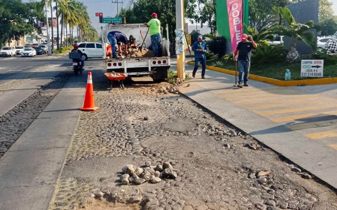 El Ayuntamiento de Colima informa a la ciudadanía que la cuadrilla de bacheo llevó a cabo trabajos de empedrado sobre la Avenida Constitución, como parte de la campaña permanente de mantenimiento a vialidades que se implementa en distintos puntos del municipio, por encomienda del presidente municipal, Riult Rivera.