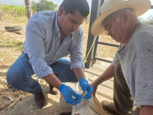 En la localidad de Parajes del municipio de Manzanillo, se revisó un bovino hembra con sospecha de presencia del gusano barrenador del ganado y después de la inspección correspondiente, se descartó la presencia de GBG, brindando certeza al productor y reforzando las acciones de vigilancia zoosanitaria en la zona.