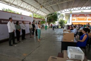 Ahí, la mandataria reiteró que para el Gobierno del Estado de Colima la educación es una prioridad, pensando en las niñas y niños de la entidad, pero también en sus maestras y maestros; por ello consideró fundamental que cuenten con mejores herramientas para que les facilite el proceso tan importante que hacen todos los días, de enseñanza y formación en las secundarias.