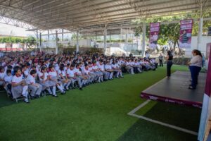 “Me da mucho gusto porque significa que compartimos con la Presidenta de México este interés y esta prioridad de que todos nuestros niños, niñas, y jóvenes tengan las mismas oportunidades y de que ustedes son lo más importante que tenemos y se los demostramos con acciones (…), pero lo que más deseamos es que sigan estudiando”, insistió.
