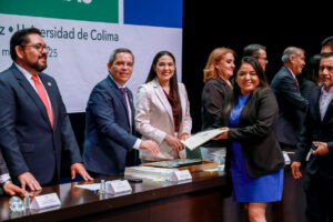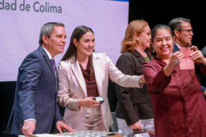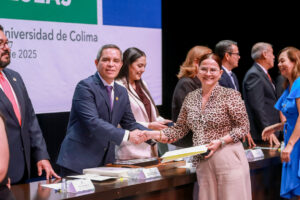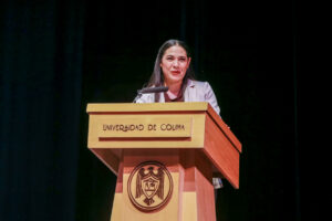 Por último, la gobernadora celebró la alianza de los universitarios con el pueblo de Colima, presente en su trabajo cotidiano “y en el proyecto de vida que cada uno y una de ustedes ha construido en torno a su misión como docente, investigador científico y desarrolladora de tecnología, como promotora de la cultura o gestor de la mejora social. En ese sentido, ser universitario y mantenerse ajeno a la comprensión de la problemática social y a la búsqueda de soluciones, sería una contradicción histórica, pues el pueblo de Colima espera de los universitarios que vayan siempre a la vanguardia”.