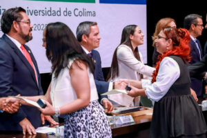 Las distinciones y reconocimientos, destacó, “representan historias de vida muy particulares y trayectorias productivas, pero, en lo colectivo, constituyen el trabajo decidido de la comunidad que ha construido y enriquecido esta Casa de Estudios, haciendo realidad las aspiraciones de una mejor formación académica para las y los colimenses”.