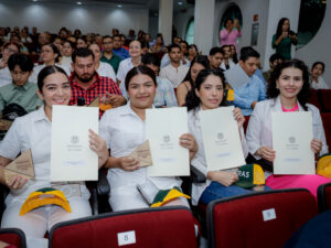 En una ceremonia llena de orgullo académico, 74 egresadas y egresados de los distintos programas de licenciatura de la Universidad de Colima recibieron este viernes el Premio al Desempeño de Excelencia EGEL, correspondiente al periodo julio 2024–enero 2025, de manos del rector Christian Jorge Torres Ortiz Zermeño. El evento tuvo lugar en el Auditorio de la Facultad de Enfermería.