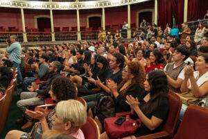 Como parte de la ceremonia, se realizó la lectura del Manifiesto del Día Mundial del Teatro 2025, a cargo de la actriz Cynthia Zapata. Por su parte, Sam Ruelas compartió el texto del “Manifiesto desde la no capital”.