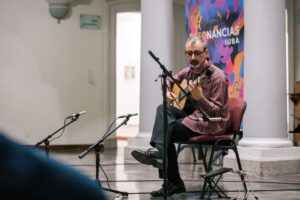 Como parte del programa Resonancias IUBA 2026, que organiza la Universidad de Colima a través del Instituto Universitario de Bellas Artes (IUBA), se presentó el pasado jueves 19 de marzo el concierto “Entre cuerdas, tangos y café”, un recital que contó con la intervención de los guitarristas Simone Iannarelli, Ramón Andrade y Winfried Kellner, en el salón del vitral de la Pinacoteca Universitaria.