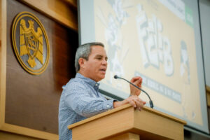 Durante su visita a la Universidad de Colima, el Mtro. Juan Carlos Arredondo Hernández, rector de la Universidad Autónoma de Aguascalientes (UAA), habló de un tema que le apasiona: el derecho laboral. En el auditorio de la Facultad de Derecho, este martes 28 por la mañana, dictó la conferencia: “Retos de los abogados y postulantes en el nuevo sistema de justicia laboral mexicano”.