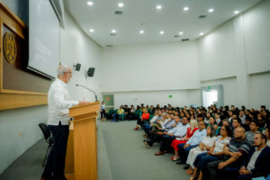 Lo escucharon estudiantes de Derecho, docentes y funcionarios que acompañaron al rector de la Universidad de Colima, Dr. Christian Jorge Torres Ortiz Zermeño. Antes de entrar de lleno al tema, el Mtro Arredondo dijo que la historia de la UAA y la UdeC “ha sido larga y desinteresada”. Ambas casas de estudio, dijo, “forman hombres y mujeres de bien” y con capacidades para tener éxito en la vida.