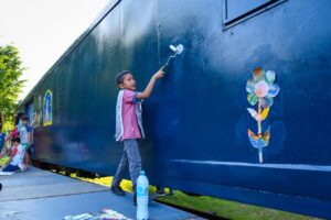 De dicho proyecto, apoyado por el Programa Nacional de Desarrollo Cultural Infantil y Juvenil ‘Alas y Raíces’, se desprende el taller ‘Coloreando al Vagón’, a través del cual se busca transformar el Vagón de las Artes en un lienzo colectivo lleno de color que invita a niñas y niños a plasmar su imaginación y su mensaje personal para la comunidad.