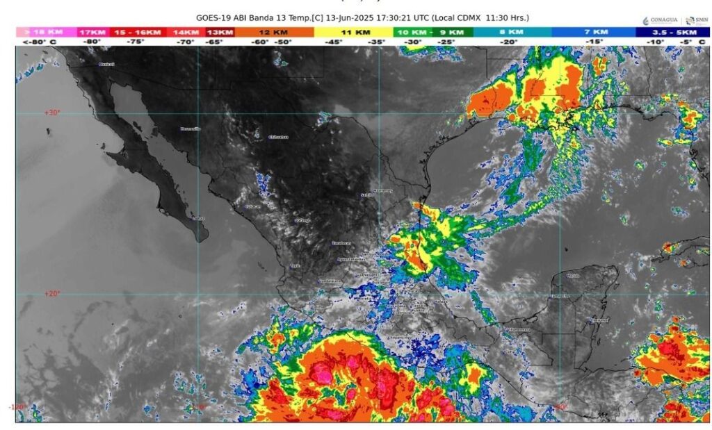 El SMN pronostica durante las próximas horas lluvias con puntuales muy fuertes de 50 a 75 milímetros en los estados de Colima y Jalisco, además de vientos de 20 a 30 kilómetros por hora con rachas de 40 a 60 km/h y oleaje elevado en las playas de la franja costera de la entidad, por lo que se reitera el exhorto a quienes acuden a las playas de Armería, Tecomán y Manzanillo, así como a quien asiste a ríos, arroyos y otros cuerpos de aguas, a extremar precauciones.