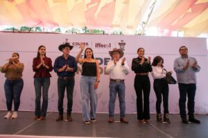 La mandataria estatal estuvo acompañada por la secretaria de Bienestar, Inclusión Social y Mujeres, Viridiana Valencia Vargas; el titular de la Subseder, y el director del Instituto de Fomento de Ferias y Exposiciones de Colima (Iffecol), Rodolfo Aguilar Dávalos.