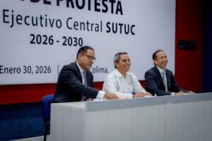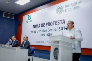 Este viernes 30 de enero, el rector de la Universidad de Colima, Christian Torres Ortiz Zermeño asistió a la toma de protesta del nuevo Comité Ejecutivo Central del Sindicato Único de Trabajadores de la Universidad de Colima (SUTUC) para el periodo 2026-2030, encabezado por Luis Enrique Zamorano Manríquez. El acto se realizó en el auditorio de la Biblioteca de Ciencias de la Universidad de Colima., campus Sur.