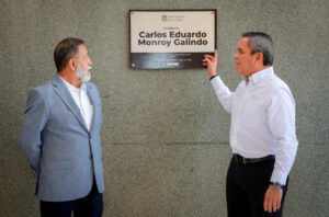 Este jueves, Carlos Eduardo Monroy Galindo recibió un reconocimiento de manos de Christian Torres Ortiz Zermeño, rector de la Universidad de Colima, por su contribución al crecimiento de la Facultad de Psicología y al desarrollo de la UdeC. Como parte de la ceremonia, realizada en el marco de la 26 Semana de Psicología, se impuso el nombre del homenajeado al auditorio del plantel.