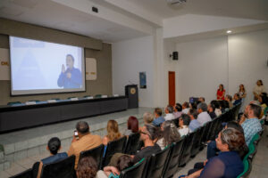 Al tomar la palabra, Carlos Eduardo Monroy agradeció profundamente el homenaje y compartió sus primeros acercamientos con la Universidad de Colima. Originario de un pueblo del Estado de México, El Oro, relató que, tras terminar la carrera de Medicina, llegó a Colima con la intención de estudiar o al menos asistir como oyente a la licenciatura en Psicología. Poco después, comenzó a colaborar en la organización de la Semana de Psicología y eventualmente se incorporó como docente en la entonces Escuela de Psicología, iniciando así su larga trayectoria en la institución.