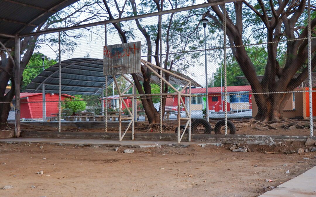 Los trabajos incluyeron la rehabilitación del terreno, demolición y mejora de banquetas, retiro de raíces que afectaban la superficie, así como la aplicación de pintura especializada con acabado antiderrapante y el trazado de líneas oficiales para actividades deportivas.