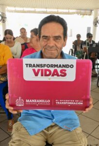 La presidenta municipal de Manzanillo, Rosa María Bayardo Cabrera, encabezó la entrega de 81 tarjetas del programa Transformando Vidas, que brinda apoyo directo a personas en situación vulnerable para cubrir gastos relacionados con terapias, traslados médicos o adquisición de insumos.