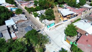 Además, se construyeron banquetas nuevas, se colocó señalamiento vial, se aplicó pintura en guarniciones, y se habilitaron rampas y cruces peatonales.