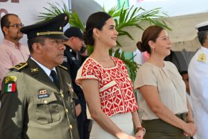 Posteriormente, la presidenta municipal presenció el desfile cívico-militar, que contó con la participación de más de 30 contingentes, conformados por instituciones educativas y corporaciones de seguridad.