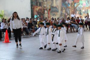La subsecretaria de Educación, Katia Paola Vázquez Solórzano, destacó la importancia de promover valores como el respeto, la disciplina, la responsabilidad y el trabajo en equipo desde los primeros años de vida escolar; señaló que estas actividades contribuyen a la formación integral de niñas y niños, fortaleciendo su identidad y sentido de pertenencia.
