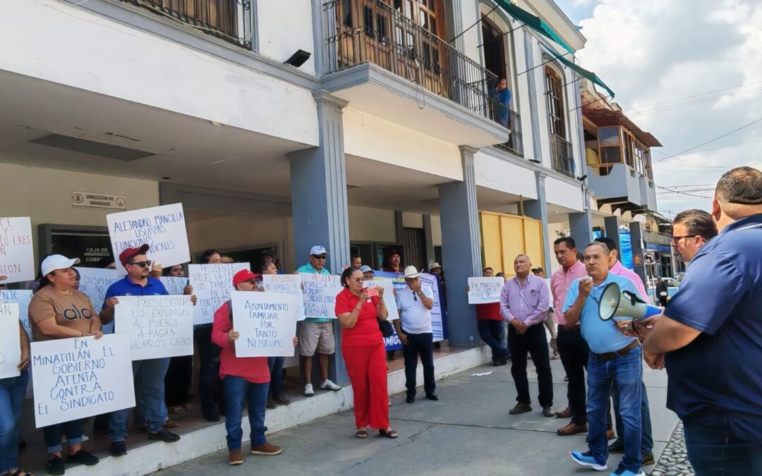 Minatitlán, Col. Ante la falta de solución a las diferentes demandas expuestas a la administración municipal encabezada por Cicerón Alejandro Mancilla González. el Sindicato de Trabajadores del Ayuntamiento de Minatitlán se manifestó nuevamente afuera de la presidencia municipal de Minatitlán, Colima.