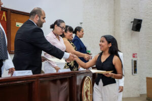 El acto culminó con la lectura del acta de examen por parte de Daisy Rebeca Aguirre Maciel, secretaria del sínodo, y la entrega simbólica de los documentos que acreditan su titulación.