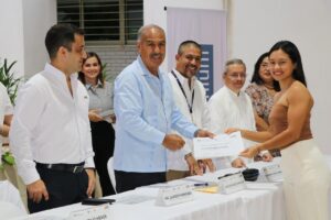 Adolfo Núñez González, secretario de Educación y Cultura del Gobierno del Estado de Colima, asistió con la representación de la gobernadora Indira Vizcaíno Silva, quien destacó la importancia de este reconocimiento que vincula al sector educativo con la iniciativa privada y promueve el talento de la juventud colimense.
