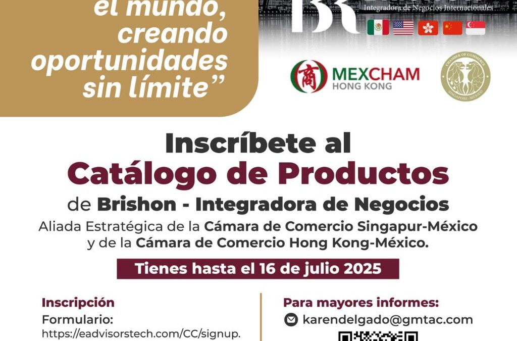 La Secretaría de Desarrollo Económico (Sedeco) del Gobierno del Estado de Colima invita a las empresas locales a participar en el Catálogo de Productos de Brishon – Integradora de Negocios Internacionales, plataforma estratégica que promueve la vinculación comercial con compradores de Asia y otras regiones del mundo.
