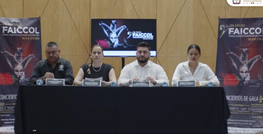 Por su parte, Mariana del Rocío Corona Delgado, directora académica del festival y docente universitaria, detalló que este año FAICCOL será también patrocinador del Concurso Nacional de Canto Carlo Morelli, el más importante del país, reforzando así su compromiso con el desarrollo artístico nacional.