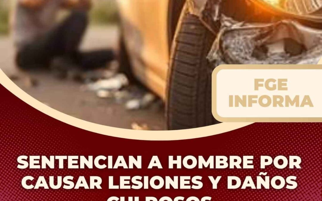 La Fiscalía General del Estado (FGE) obtuvo sentencia condenatoria en contra de Ernesto “N” por su responsabilidad penal en lo que la ley señala como los delitos de lesiones culposas y daños culposos, cometidos en agravio de un hombre en noviembre de 2021.