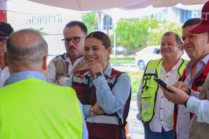 La titular de la Secretaría de Infraestructura, Desarrollo Urbano y Movilidad (Seidum) del Gobierno del Estado de Colima, Marisol Neri León, junto con Juan Carlos Fuentes Orrala, subsecretario de Infraestructura de la SICT (Secretaría de Infraestructura, Comunicaciones y Transportes) del Gobierno de México; el director general de Desarrollo Carretero, Rafael Cervantes de la Teja, y el titular de SICT en esta entidad, Christopher Lucas Ochoa, en un recorrido de supervisión a los trabajos preliminares de lo que será el paso superior vehicular Arco Norte, en la confluencia del Tercer Anillo Periférico y avenida Venustiano Carranza, en la capital colimense.