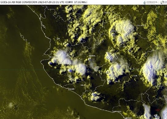 El SMN prevé que este domingo 30 de julio, en Colima se registrarán lluvias fuertes con puntuales muy fuertes de hasta 75 milímetros. En cuanto a las temperaturas máximas, la entidad registrará hasta 40 grados Celsius.