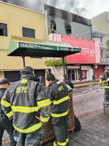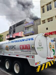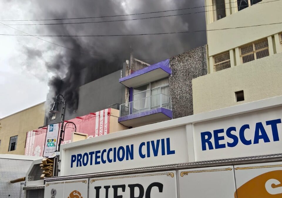 Personal operativo de la Unidad Estatal de Protección Civil (UEPC) del Gobierno del Estado de Colima, en coordinación con integrantes del Heroico Cuerpo de Bomberos Voluntarios y el apoyo de la Policía Estatal Preventiva, atendieron la mañana de este lunes un incendio que se registró en la segunda planta de un establecimiento comercial de telas en la calle Francisco I. Madero, en el centro histórico de esta ciudad capital.