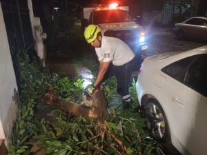 Hasta las 8:00 de la noche de este 17 de agosto, se registran 25 reportes de árboles caídos, principalmente en los municipios de Colima, Villa de Álvarez, Comala y Cuauhtémoc, todos están siendo atendidos por las respectivas Unidades Municipales de Protección Civil y las direcciones de Servicios Públicos Municipales.