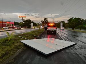 Los reportes indican tres postes caídos, un transformador dañado, tres letreros derribados, así como un accidente de motocicleta.