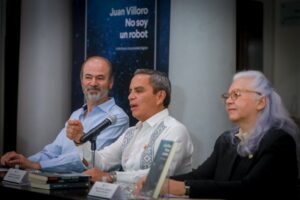 Torres Ortiz destacó que Villoro plantea con agudeza “la tensión entre lo que nos hace humanos nuestras emociones, errores y fragilidades, y el crecimiento imparable de la tecnología y la inteligencia artificial”.