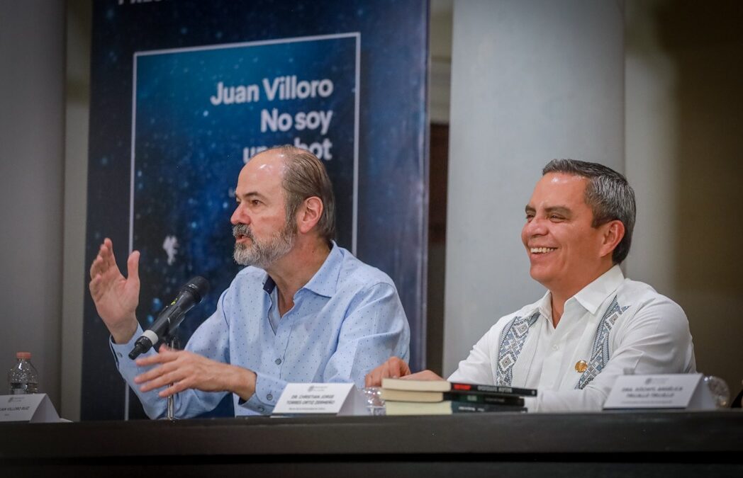 Juan Villoro, distinguido con el Doctorado Honoris Causa por la Universidad de Colima, presentó este miércoles por la tarde, en la Pinacoteca Universitaria, su más reciente libro No soy un robot. Lectura y la sociedad digital, una obra que, con mirada crítica e ingeniosa, examina los retos que plantea la revolución tecnológica y sus implicaciones éticas, culturales y humanas.