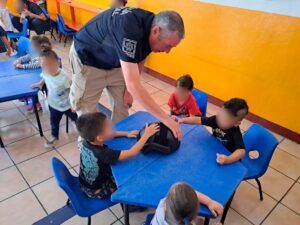 Durante esta jornada, las y los pequeños conocieron el equipo táctico antimotín, recibieron una breve explicación sobre las funciones que realiza una persona policía y tuvieron oportunidad de interactuar, tocar y probarse el equipo, fomentando así la confianza y el interés por la labor policial.