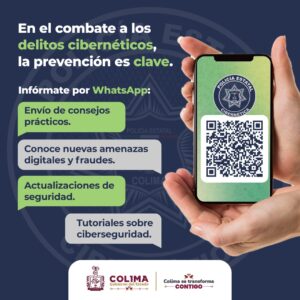 La Secretaría de Seguridad Pública (SSP) del Gobierno del Estado de Colima invita a la población de la entidad a suscribirse -de manera gratuita- al canal de difusión de la Policía Cibernética Colima, a través de https://whatsapp.com/channel/0029VaAyyCiATRSi23tsju3T en WhatsApp.