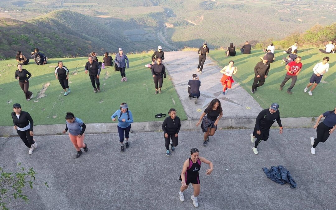 La actividad se desarrolló en el cerro de La Cumbre, en el municipio de Colima, donde cerca de medio centenar de participantes acudieron para formar parte de las dinámicas de baile social, senderismo y entrenamiento funcional, promoviendo hábitos saludables y el bienestar integral.